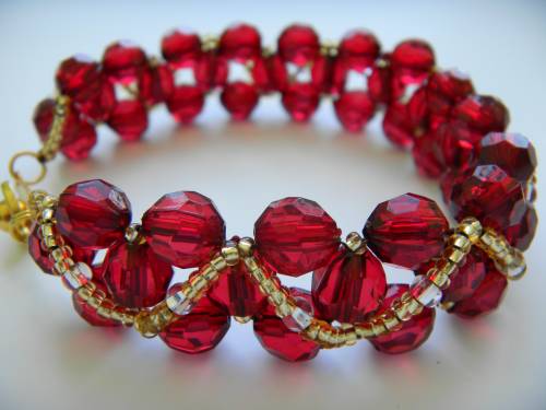 Браслет из чешского бисера и акриловых гранатовых бусин. Застежка-кнопка удобна тем, что можно застегивать одной рукой, без посторонней помощи.
